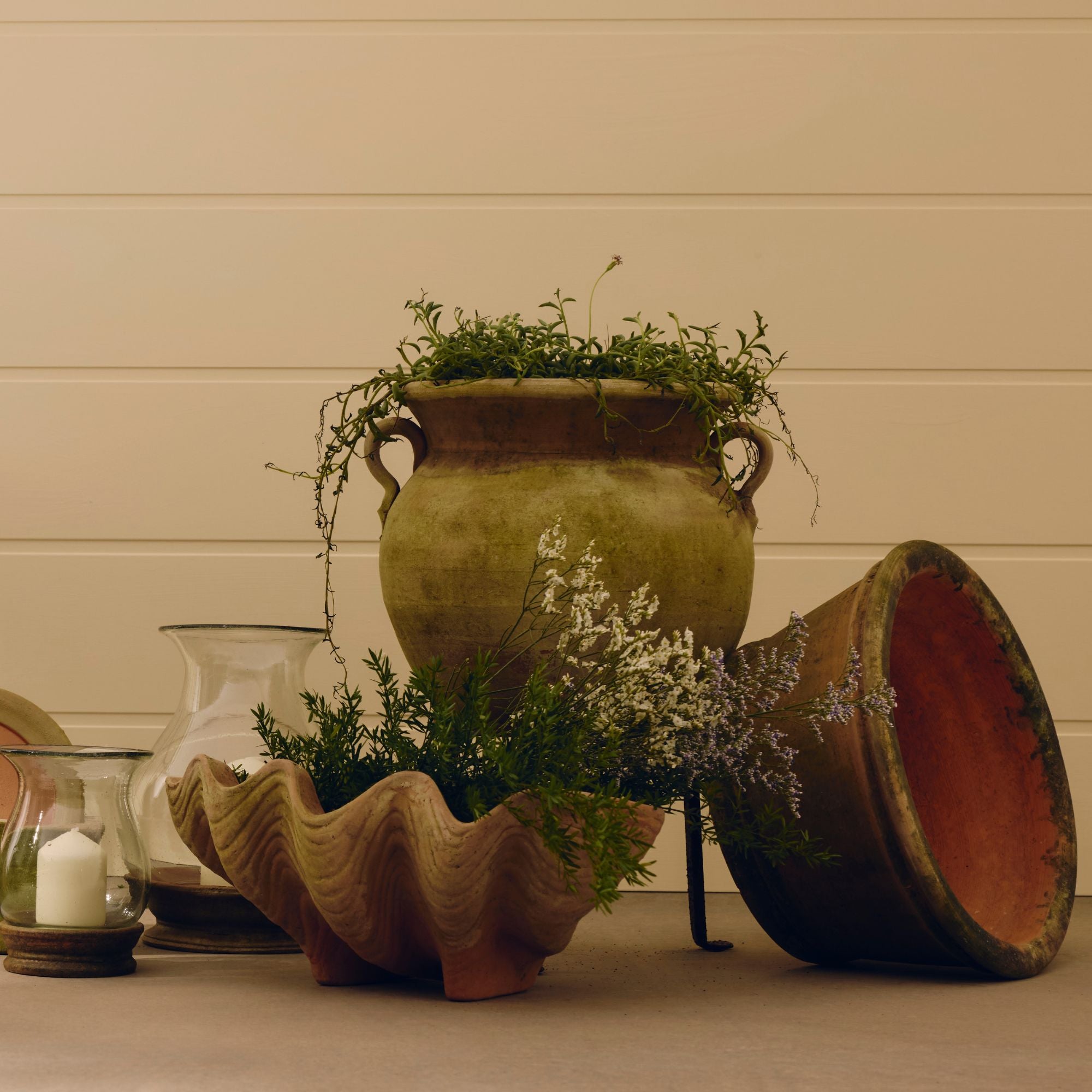 Issu de notre collection de récipients peu profonds, le pot Aged Azalea Pot présente une large ouverture qui convient parfaitement aux centres de table, aux plantations d'herbes aromatiques ou à l'azalée qui lui a donné son nom. Sa forme généreuse permet également d'accueillir les racines des cactus et des plantes succulentes, ce qui en fait un objet polyvalent qui apporte aisance et équilibre aux compositions végétales.