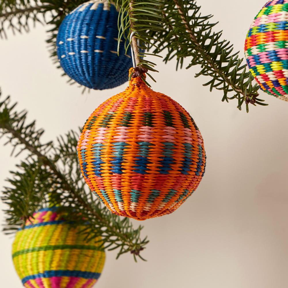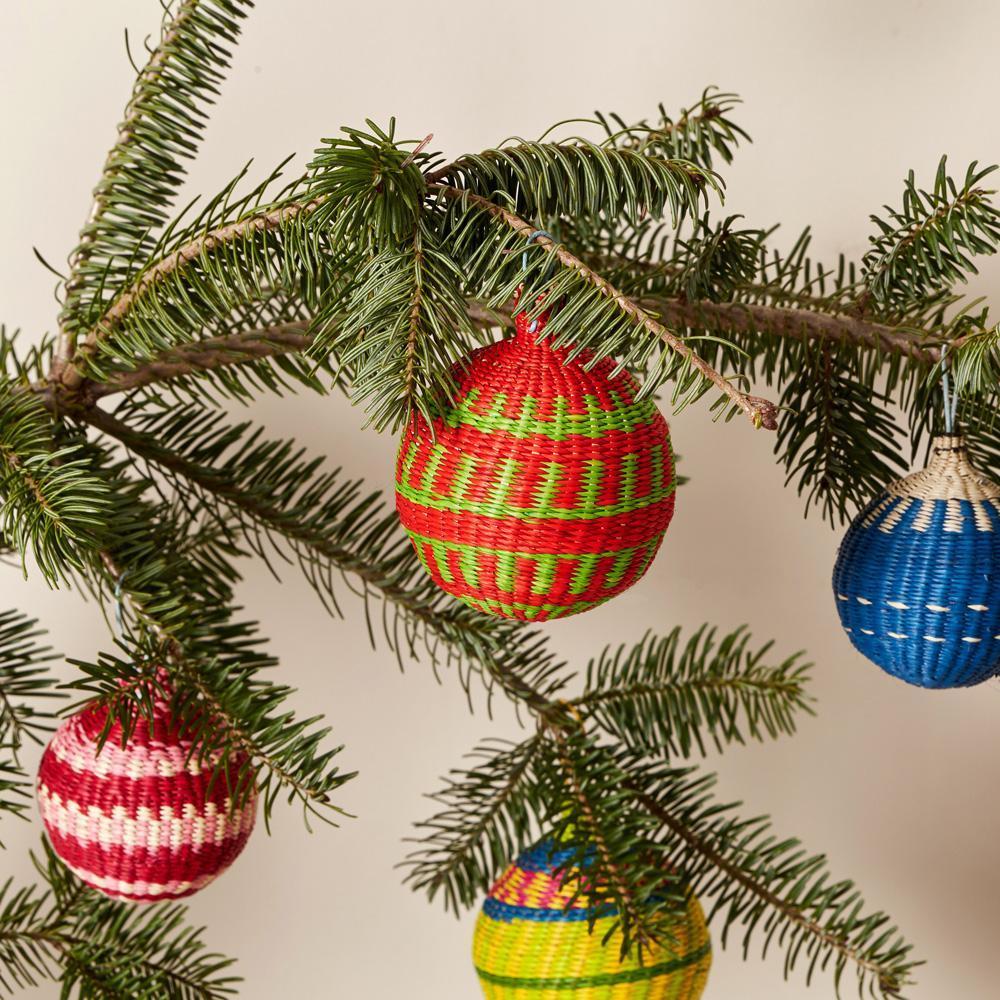 Décorez les salles et le sapin avec ces boules festives fabriquées à la main dans les Andes par des artisans colombiens. Fabriquées à partir des feuilles du palmier Jipijapa - le même matériau que celui utilisé pour les chapeaux de Panama - chaque ornement du set est unique et se décline en différentes combinaisons de couleurs. Que vous les gardiez ou que vous les offriez, ces ornements de Noël, dignes d'un héritage, seront conservés précieusement pendant des années.