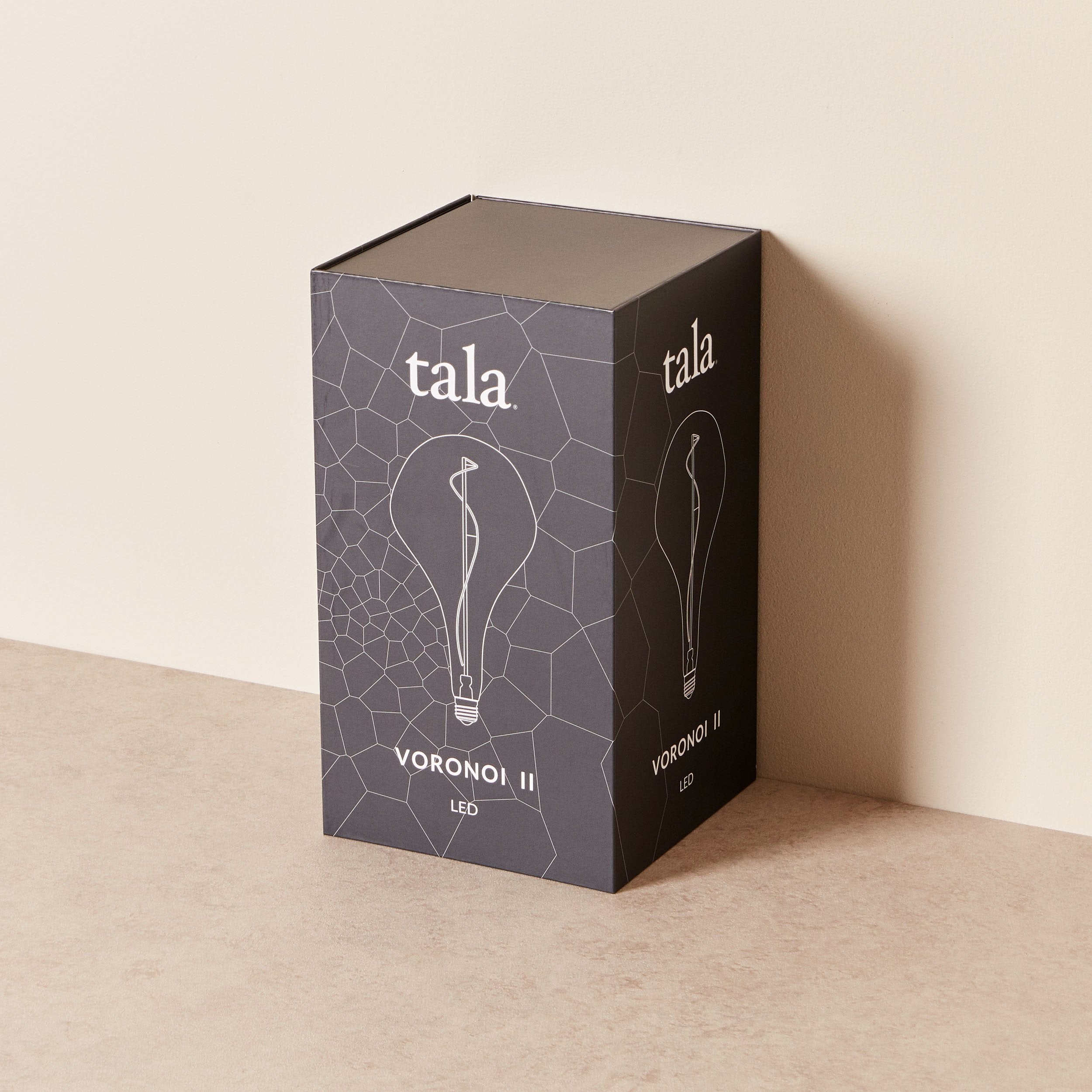 Illuminated art. That's what comes to mind when looking at the Voronoi II, an elegant, elongated bulb that delights and inspires. Mouth-blown and hand-assembled, this droplet-shaped bulb is TALA's most popular and for good reason: Its single filament is wrapped around the light's central column, producing an impressive glow that reduces energy output by 90%.