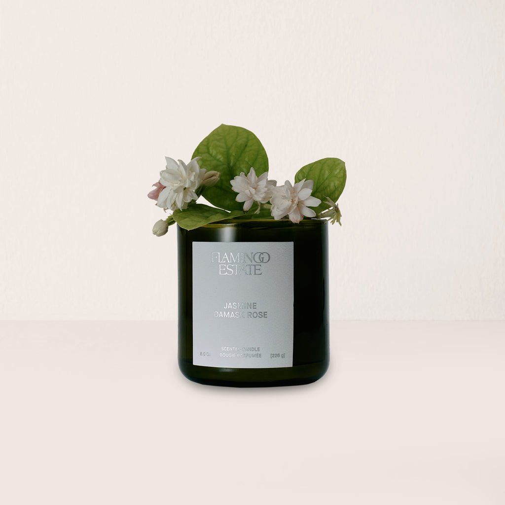 Our most beautiful fragrance — inspired by Jasmine drifting through open windows at night. Jasmine Damask Rose candle is a bold, sweet floral with a burst of spice, swirling with Ionian Bergamot, Damask Rose, Pink Peppercorn, and White Sandalwood. Bright, warm, and unforgettable.
