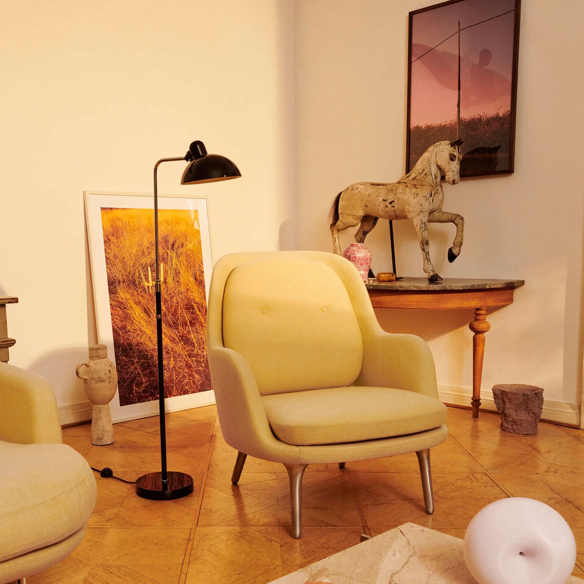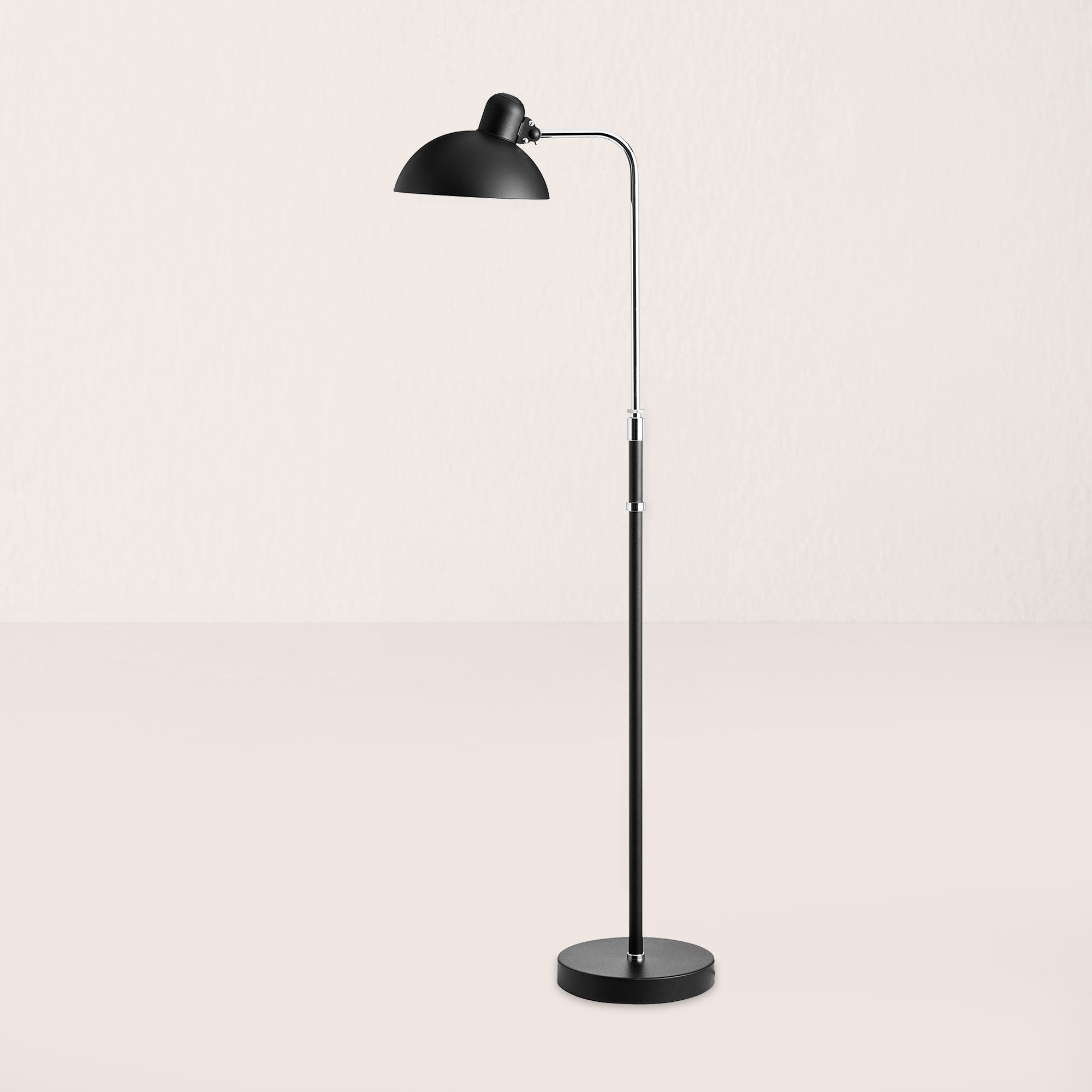 The renowned KAISER idell™ lamp is a testament to Christian Dell’s mastery of Modernist design, defined by its use of pure geometric forms and functional elegance. Designed in 1936, the 6580-F Luxus floor lamp combines Bauhaus precision with timeless sophistication. Adjustable in height, with a ball-jointed lampshade and tilt head for directional lighting, it offers both sculptural beauty and everyday utility. Crafted with exquisite materials and exacting engineering, the lamp has become an enduring symbol of noble Bauhaus design.