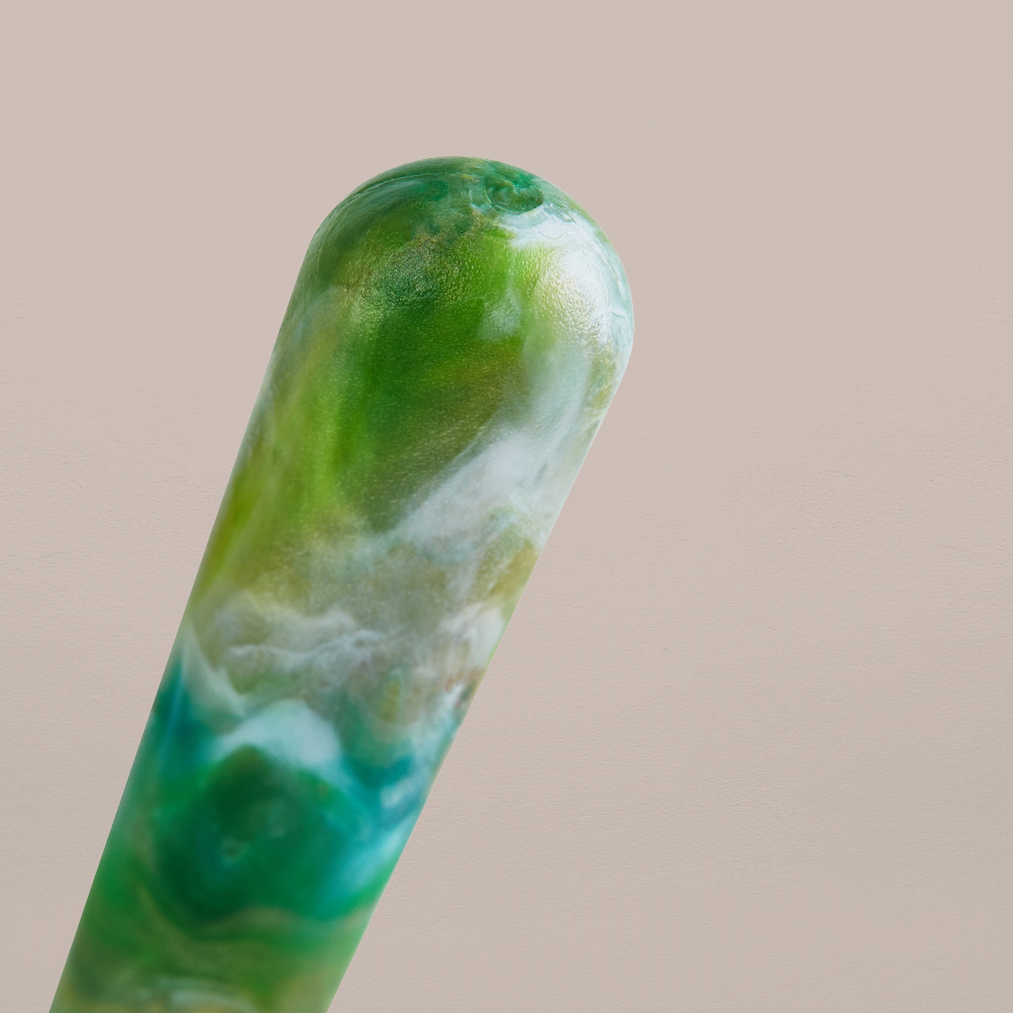 The handle is made entirely in the UK from post-consumer plastic waste, transforming the equivalent of 36 plastic bottles into a durable and distinctive material. Because the waste source varies depending on what is collected, each handle features unique color variations—making every piece one of a kind.